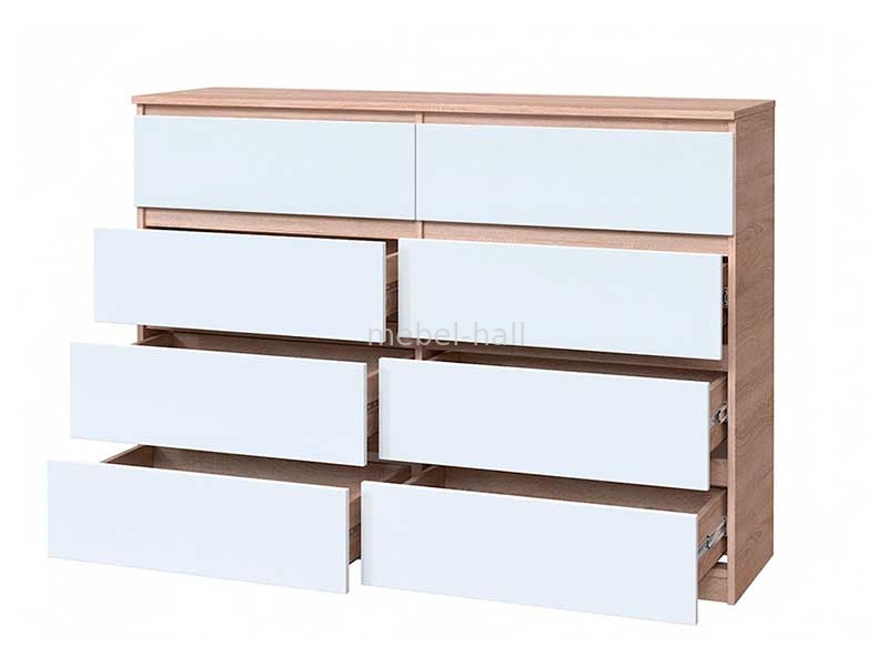 Комод большой и широкий 8 шухляд Брайт Мастер Форм 1300х376х950h мм ДСП Белый / Дуб Сонома