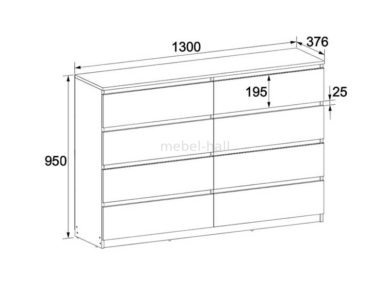Комод большой и широкий 8 шухляд Брайт Мастер Форм 1300х376х950h мм ДСП Венге Магия
