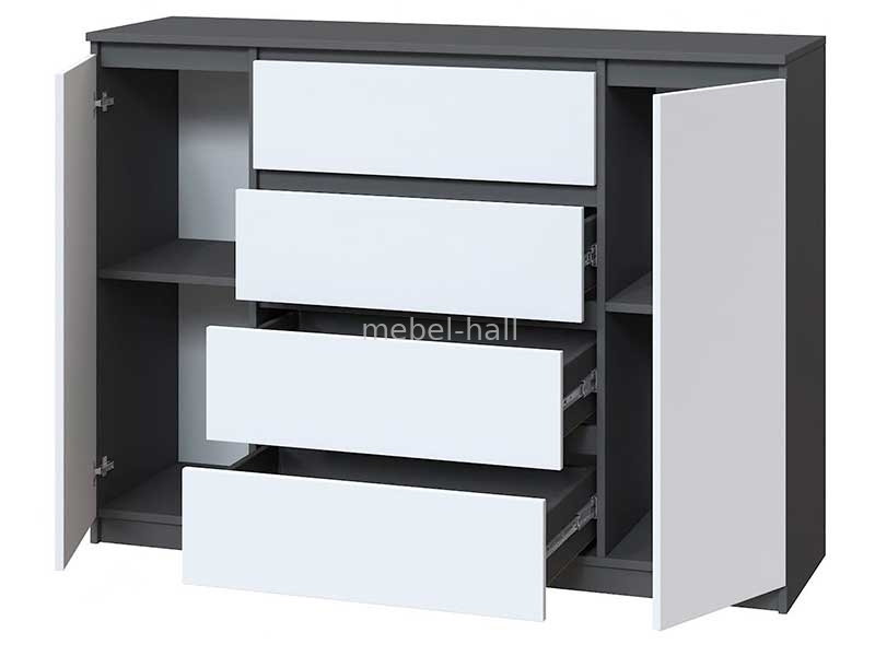 Комод широкий 2 двери и 4 шухляды Брайт Мастер Форм 1392х376х950h мм ДСП Белый / Антрацит