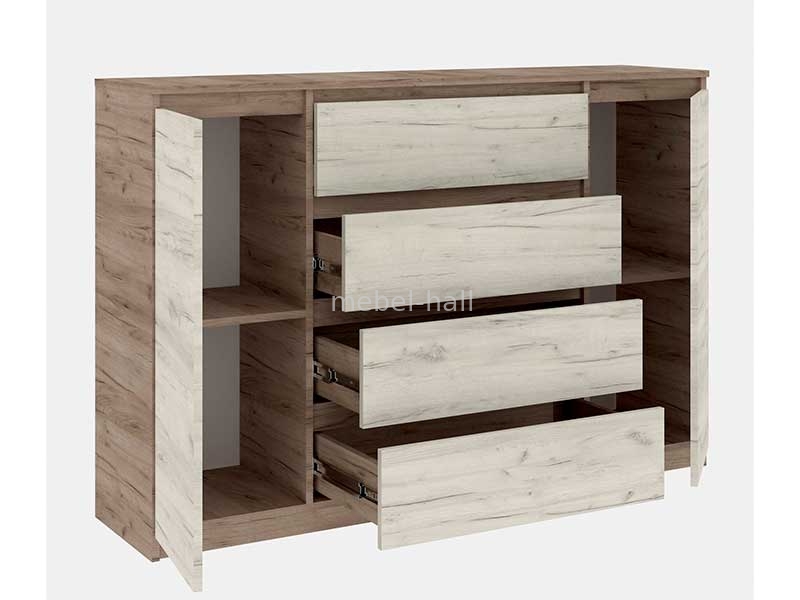 Комод широкий 2 двери и 4 шухляды Брайт Мастер Форм 1392х376х950h мм ДСП Дуб Крафт Белый / Дуб Крафт Серый