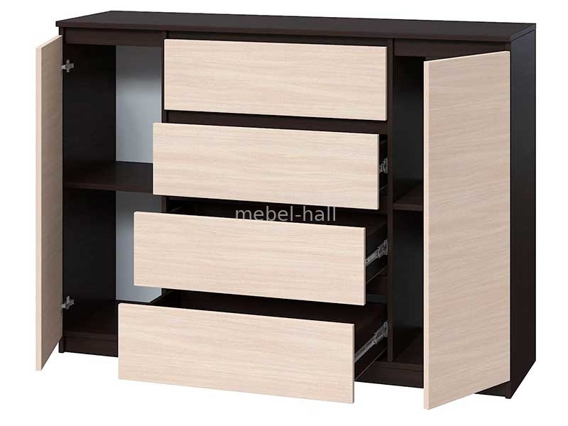 Комод широкий 2 двери и 4 шухляды Брайт Мастер Форм 1392х376х950h мм ДСП Дуб Молочный / Венге Магия