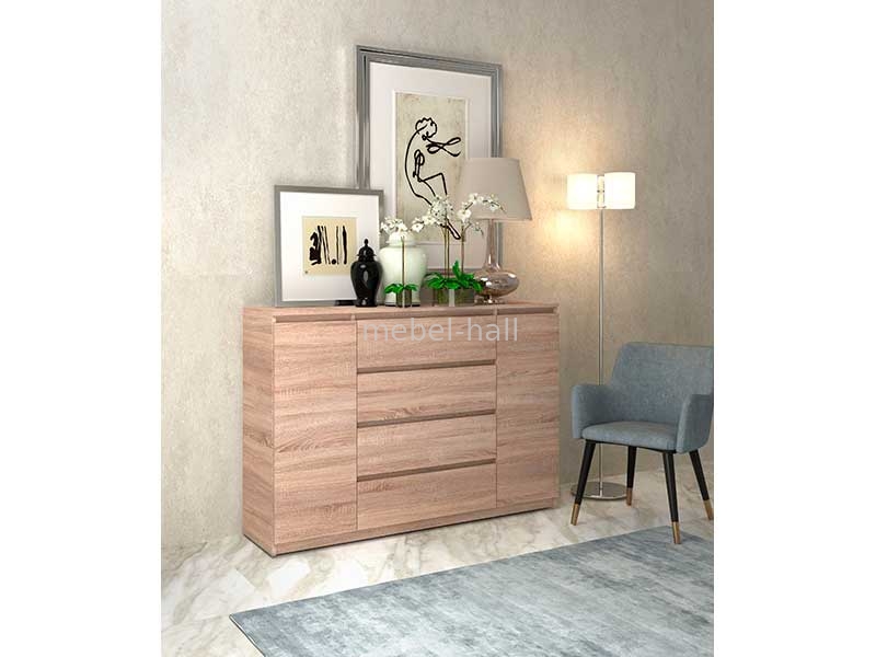 Комод широкий 2 двери и 4 шухляды Брайт Мастер Форм 1392х376х950h мм ДСП Дуб Сонома