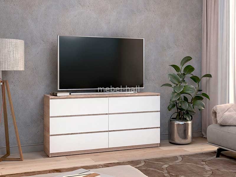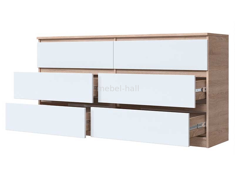 Комод широкий 6 шухляд Брайт Мастер Форм 1500х376х730 h мм ДСП Белый / Дуб Сонома