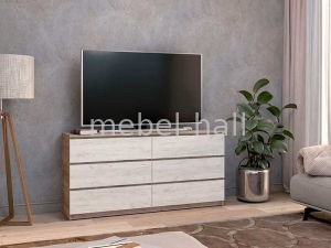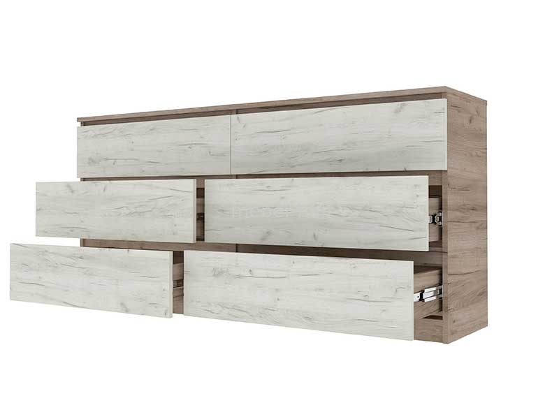 Комод широкий 6 шухляд Брайт Мастер Форм 1500х376х730 h мм ДСП Дуб Крафт Белый / Дуб Крафт Серый