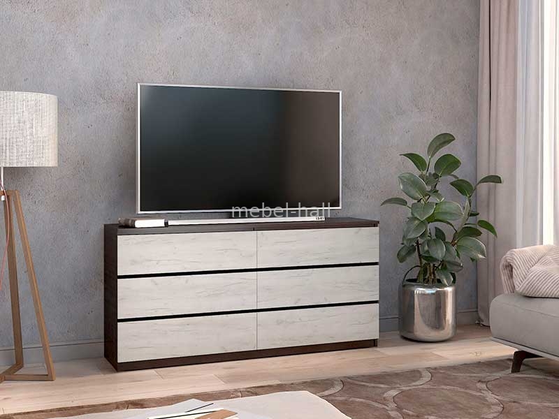 Комод широкий 6 шухляд Брайт Мастер Форм 1500х376х730 h мм ДСП Дуб Крафт Белый / Венге Магия