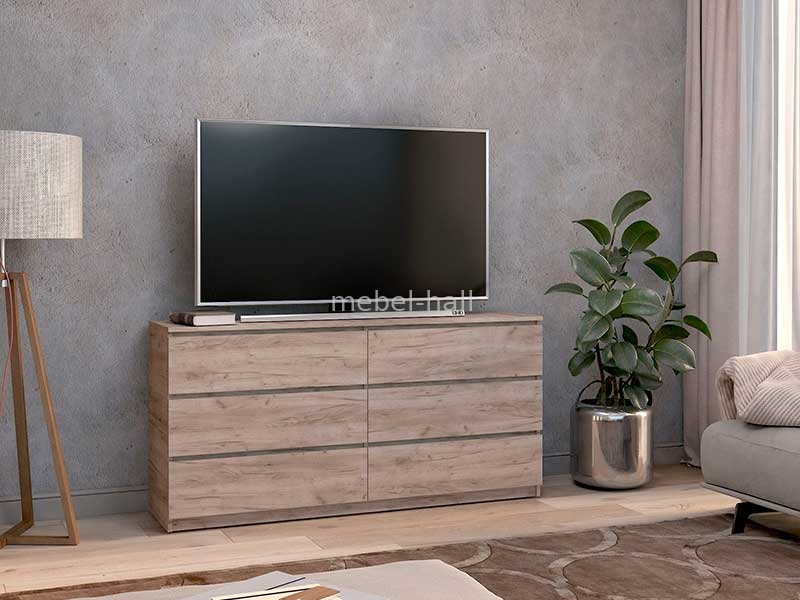 Комод широкий 6 шухляд Брайт Мастер Форм 1500х376х730 h мм ДСП Дуб Крафт Серый