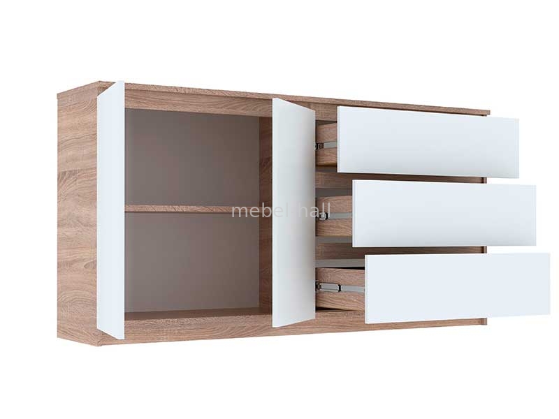Комод широкий 2 двери и 3 шухляды Брайт Мастер Форм 1580х376х730h мм ДСП Белый / Дуб Сонома правосторонний