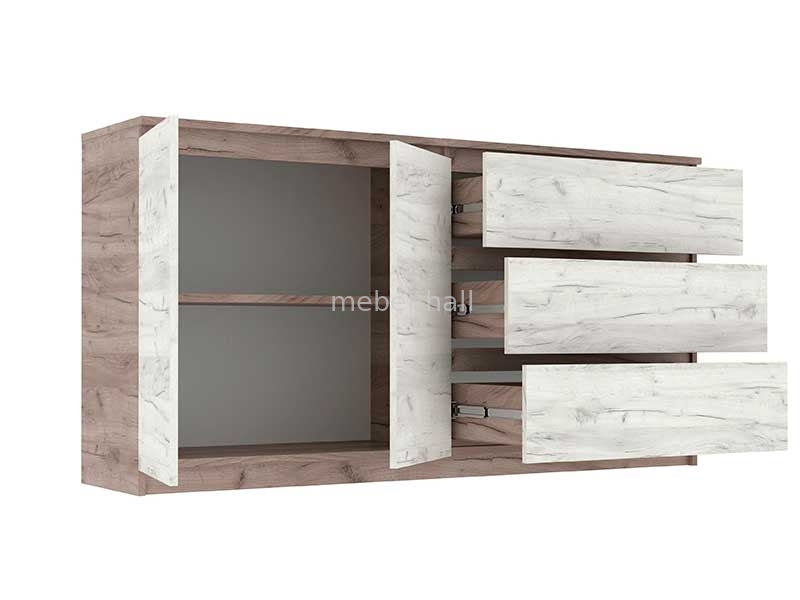 Комод широкий 2 двери и 3 шухляды Брайт Мастер Форм 1580х376х730h мм ДСП Дуб Крафт Белый / Дуб Крафт Серый правосторонний