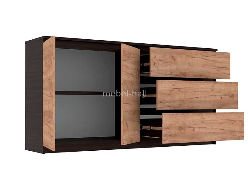Комод широкий 2 двери и 3 шухляды Брайт Мастер Форм 1580х376х730h мм ДСП Дуб Крафт Золото / Венге Магия правосторонний