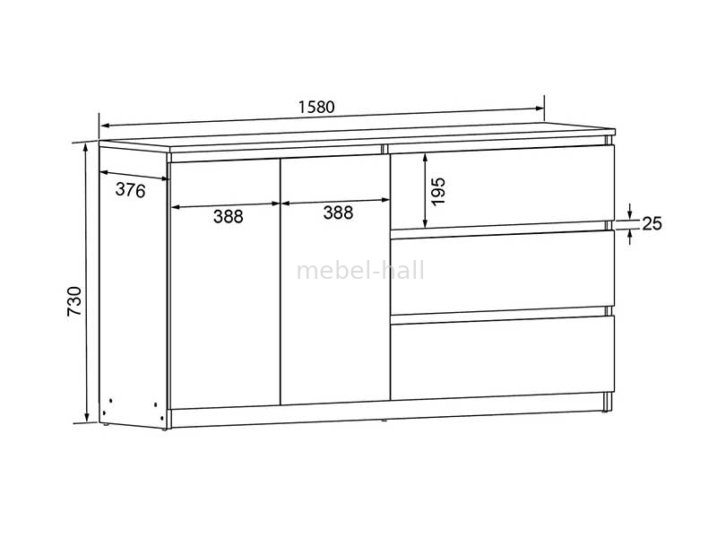 Комод широкий 2 двери и 3 шухляды Брайт Мастер Форм 1580х376х730h мм ДСП Венге Магия правосторонний