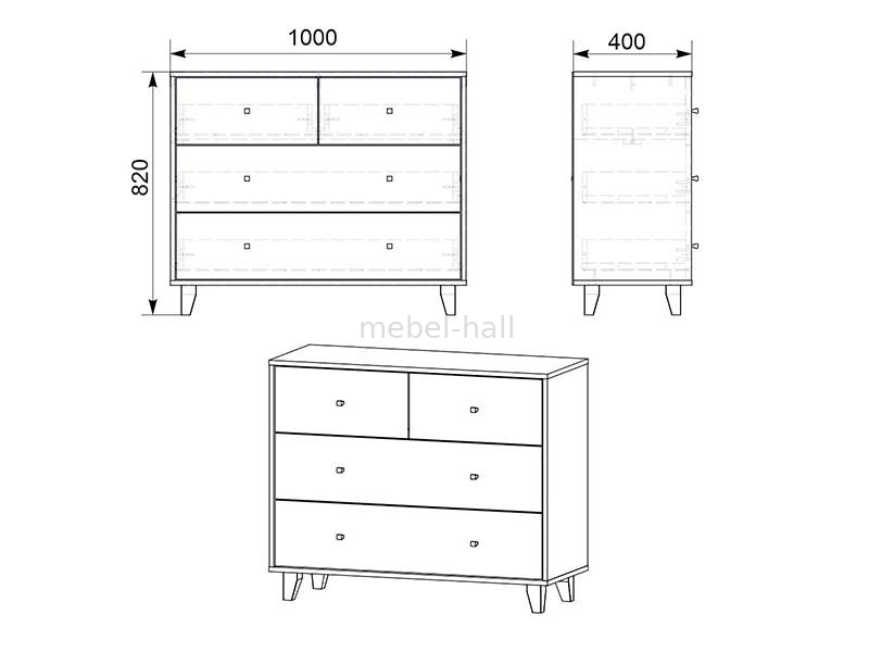 Комод-22 - современное изделие с четырьмя выдвижными ящиками на роликовых направляющих и на ножках.
