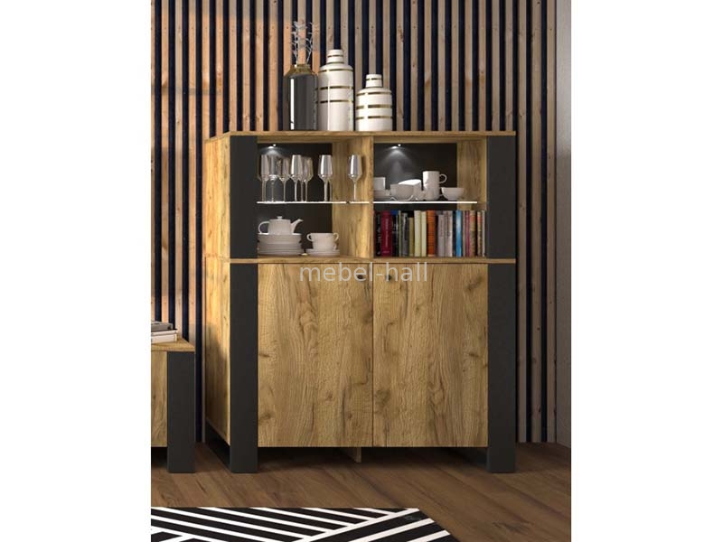 Комод 2Д от украинского производителя Сокме. Современная модульная мебель в стиле лофт для гостиной. Декоративные черные планки могут выгодно скорректировать высоту помещения. Контраст приятной текстуры древесины в декоре "дуб крафт золотой", и белый свет подсветки стеклянных витрин, сбалансирует дизайн и подарит уют Вашей гостиной. Аккуратные ручки черного цвета удобные и идеально вписываются в общий характер мебели. Те, кто хочет оформить свой интерьер стильно и модно, а также ценит практичность и комфорт, мы рекомендуем приобрести мебель Олд Вуд.