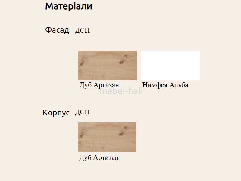 Корпус выполнен из ламинированного ДСП в цвете Дуб Артизан.