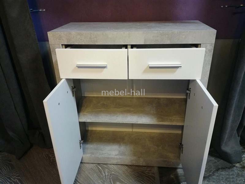 Комод 2Д2Ш ОМЕГА Світ Меблів стильный, воплощающий в себе всю красоту и сдержанность простых линий и форм. Выпускается в эффектном сочетании модных цветов: корпус индастрил, фасад белый по периметру индастрил. Такое сочетание цветов зрительно расширяют пространство.В качестве декора используются плоские металлические ручки цвета «алюминий». Модель оснащена выдвижным ящиками на направляющих полного выдвижения, что гарантирует плавность при выдвижении и долговечность. Комод ОМЕГА украсит самый изысканный интерьер.
