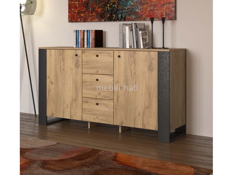 Комод 2Д3Ш от украинского производителя Сокме. Современная модульная мебель в стиле лофт для гостиной. Декоративные черные планки могут выгодно скорректировать высоту помещения. Контраст приятной текстуры древесины в декоре "дуб крафт золотой", сбалансирует дизайн и подарит уют Вашей гостиной. Аккуратные ручки черного цвета удобные и идеально вписываются в общий характер мебели. Те, кто хочет оформить свой интерьер стильно и модно, а также ценит практичность и комфорт, мы рекомендуем приобрести мебель Олд Вуд.