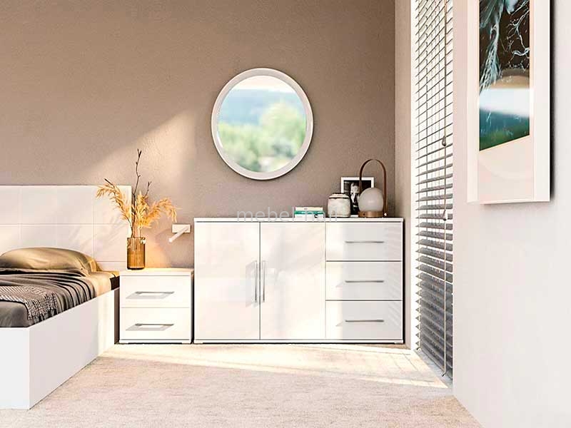 Модульная мебель в современном стиле от украинской мебельной фабрики MiroMark. Органичный дизайн, чисто белый цвет, металлические хромированные ручки, пластмассовые ножки, покрытые хромом в цвет ручек, помогут оформить стильный интерьер спальной комнаты.