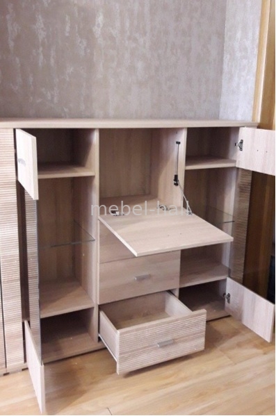 Комод 2 витрины 1 дверь 3 шухляды Гресс Мебель Сервис ДСП Дуб Самоа