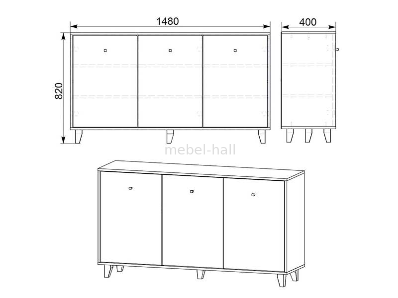 Комод-30 - современное изделие с тремя дверьми на ножках.