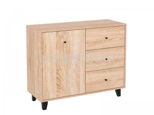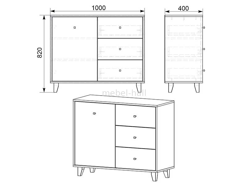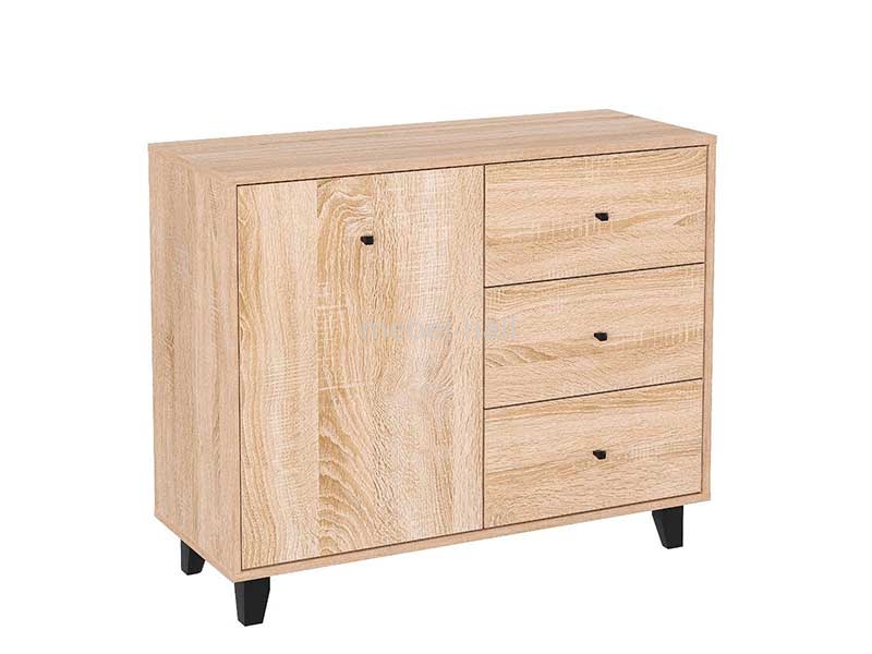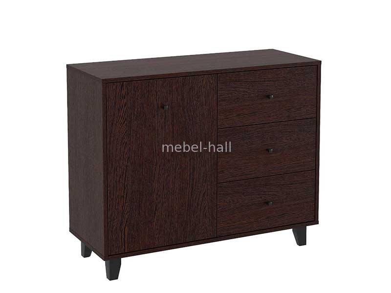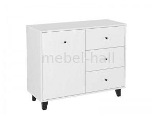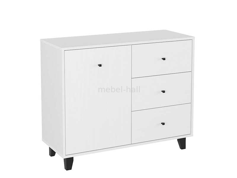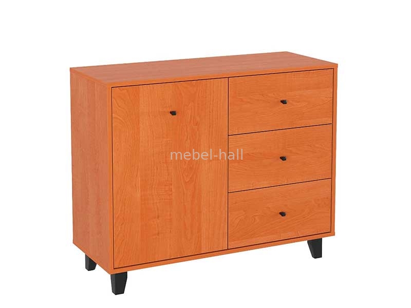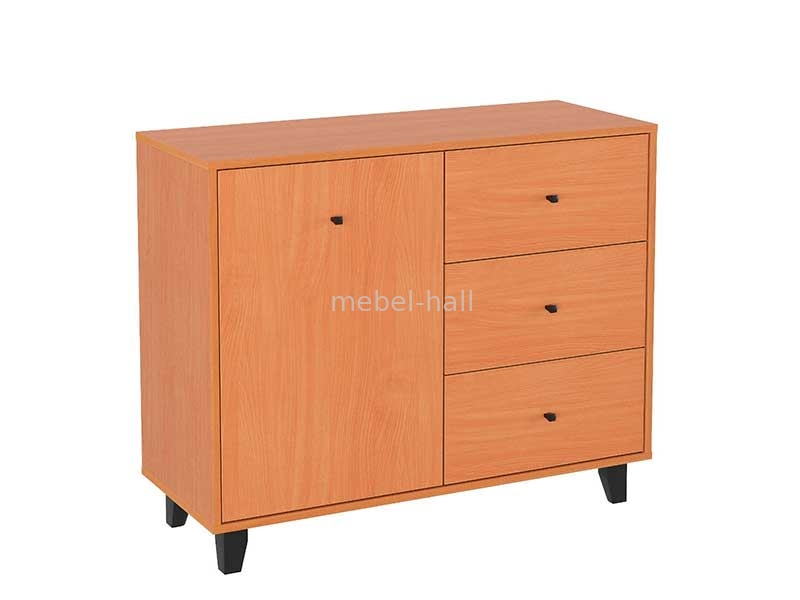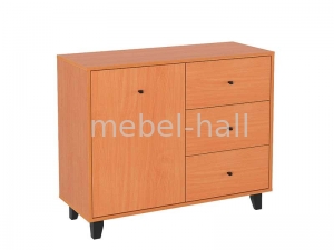 Комод-31 - современное изделие с одной дверью, тремя выдвижными ящиками на роликовых направляющих, и на ножках.