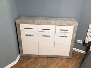Комод 3Д3Ш ОМЕГА Світ Меблів стильный, вместительный, воплощающий в себе всю красоту и сдержанность простых линий и форм. Выпускается в эффектном сочетании модных цветов: корпус индастрил, фасад белый по периметру индастрил. Такое сочетание цветов зрительно расширяют пространство.В качестве декора используются плоские металлические ручки цвета «алюминий». Модель оснащена выдвижным ящиками на направляющих полного выдвижения, что гарантирует плавность при выдвижении и долговечность. Комод ОМЕГА украсит самый изысканный интерьер.