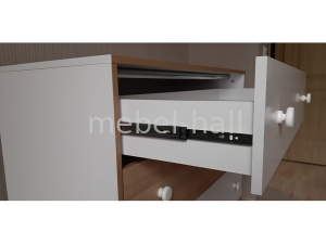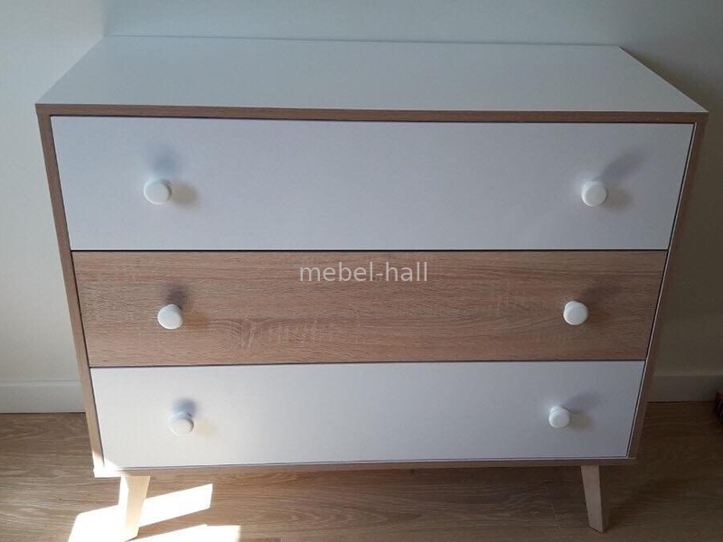 Вместительный комод ЭРИКА с тремя шухлядами от украинской фабрики "Світ Меблів". Современный светлый комод с оригинальным цветовым решением фасадов. Направляющие на ящиках полного выдвижения, что гарантирует плавность при выдвижении и долговечность. Характеризуется правильными геометрическими формами, прямыми линиями, простым и лаконичным исполнением, высокими ножками и круглыми ручками.