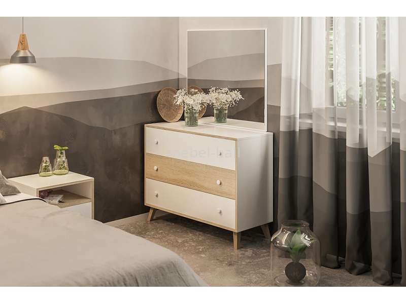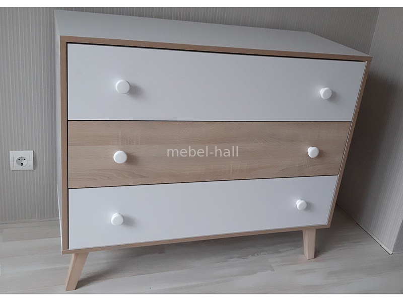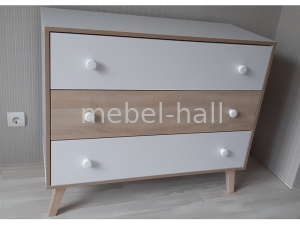 Комод 3 ящика ЭРИКА на ножках ДСП Белый и Дуб сонома