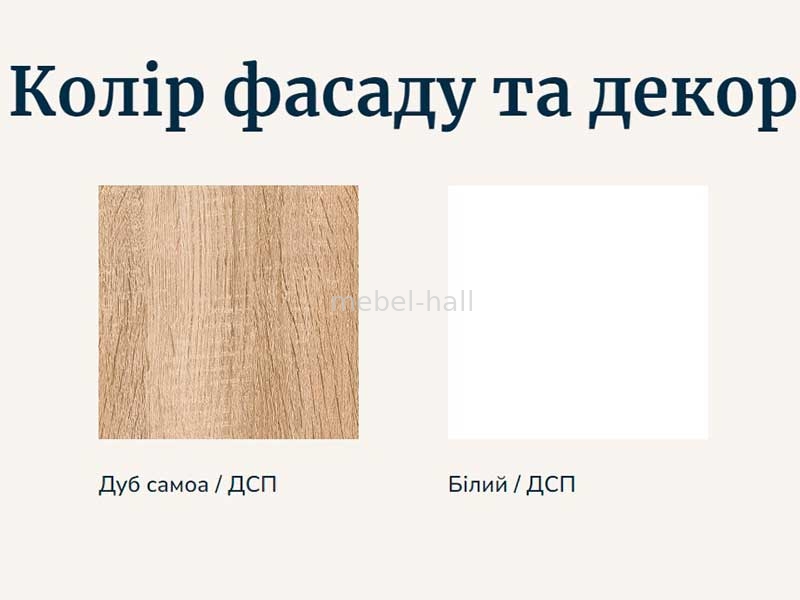 Фасад выполнен из ламинированного ДСП в цвете Белый и Дуб Самоа .