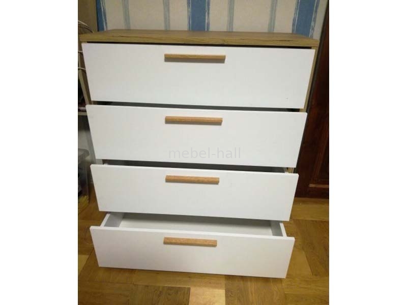 Комод 4Ш Франческа современный комод с неординарным дизайном. Комод выполнен в минималистическом стиле, что дарит ощущение упорядоченности пространства и чистоты форм. Сочетание белого и древесного декоров придают комоду современный стиль.