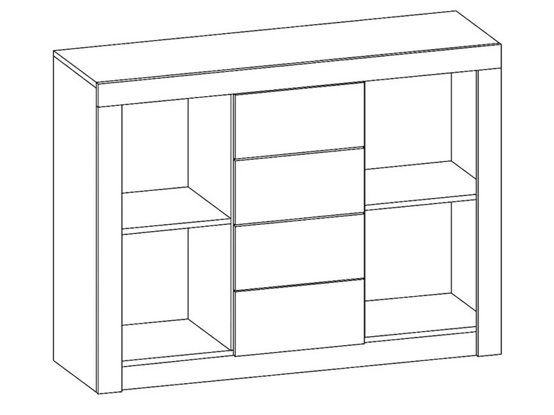 Комод Квадро с четырьмя шухлядами и двумя дверьми Мебель Сервис от украинской фабрики "Мебель-Сервис". Современный комод с оригинальным решением фасадов. Направляющие на ящиках телескопические, что гарантирует плавность при выдвижении и долговечность. Характеризуется правильными геометрическими формами, прямыми линиями, простым и лаконичным исполнением, который создаст уют и крепкий сон в вашей спальне.