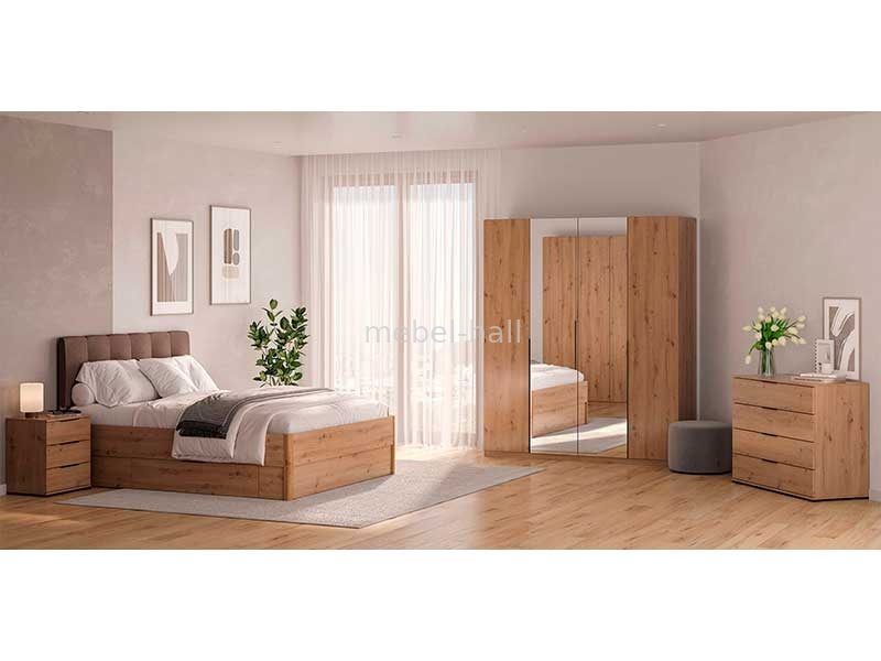 Мебель для спальни Тедди в современном стиле с древовидными поверхностями от украинской мебельной фабрики MiroMark. Функциональный дизайн, легкость и минимализм, алюминиевые профильные ручки черного цвета, помогут оформить стильный интерьер спальной комнаты.
