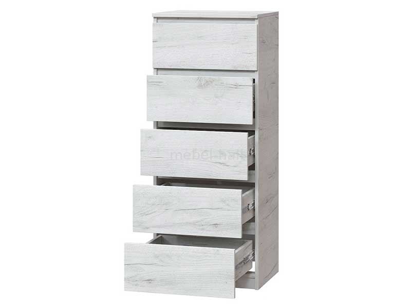 Комод узкий и высокий 5 шухляд Брайт Мастер Форм 500х376х1170h мм ДСП Дуб Крафт Белый