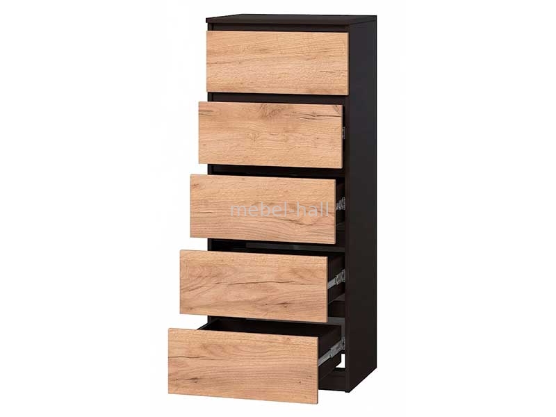 Комод узкий и высокий 5 шухляд Брайт Мастер Форм 500х376х1170h мм ДСП Дуб Крафт Золото / Венге Магия