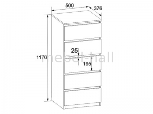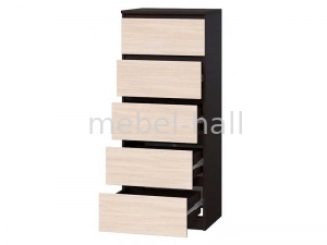 Комод узкий и высокий 5 шухляд Брайт Мастер Форм 500х376х1170h мм ДСП Дуб Молочный / Венге Магия