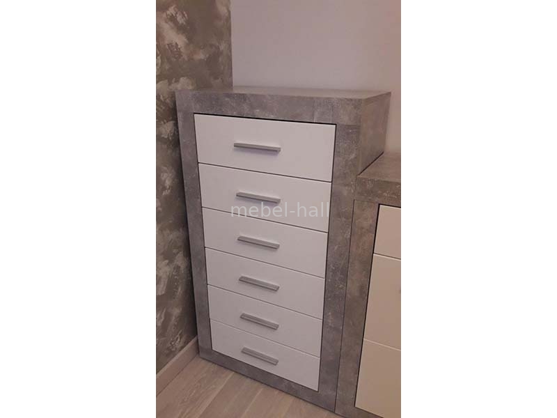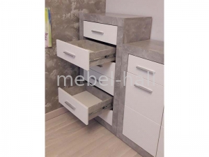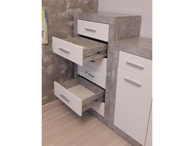 Фасад выполнен из МДФ в цвете Белый + ДСП в цвете Индастрил.