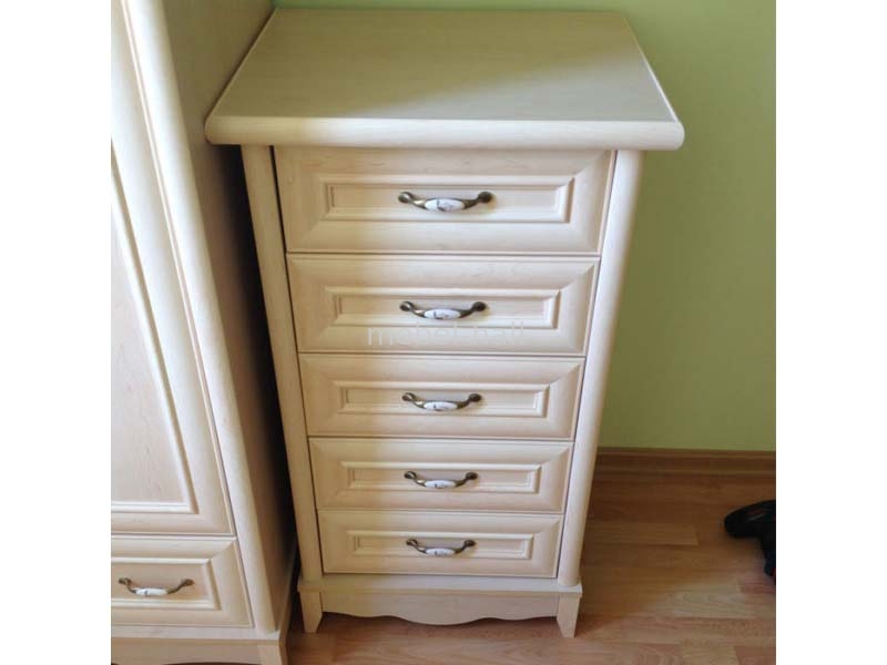 Комод имеет пять шухляд, которые выдвигаются на направляющих полного выдвижения, что гарантирует надежность и плавность выдвижения.
