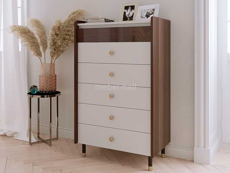 Комод 6Ш Либерти Світ Меблів - модульная мебель в стиле ретро от украинской мебельной фабрики Світ Меблів. Современный дизайн, натуральная контрастная расцветка, высокие ножки, круглые металлические золотистые ручки, помогут оформить стильный интерьер спальной комнаты.