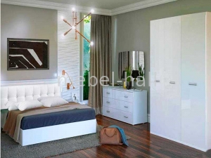 Мебель выполнена в современном стиле от украинской мебельной фабрики MiroMark. Органичный дизайн, чисто белый цвет, хромированные ручки, помогут оформить стильный интерьер спальной комнаты.