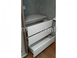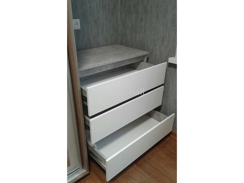 Комода имеет 3 выдвижных ящика на направляющих полного выдвижения, что гарантирует надежность и плавность выдвижения.