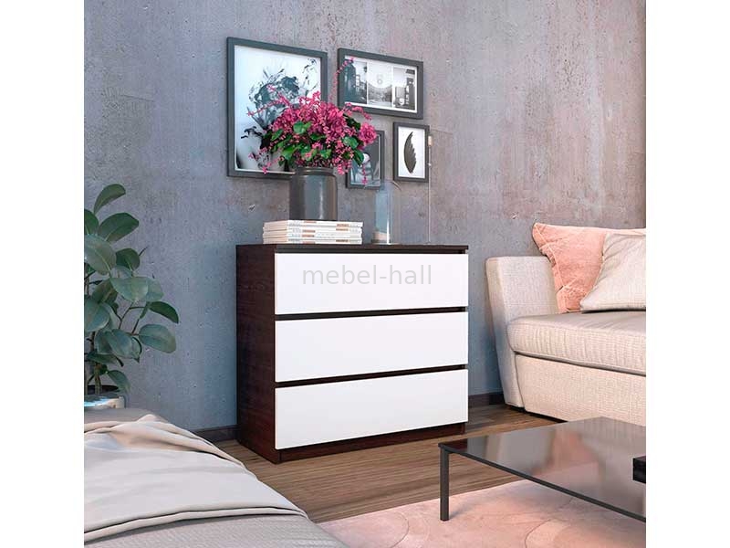 Комод 3 шухляды Брайт Мастер Форм 800х376х730h мм ДСП Белый / Венге Магия