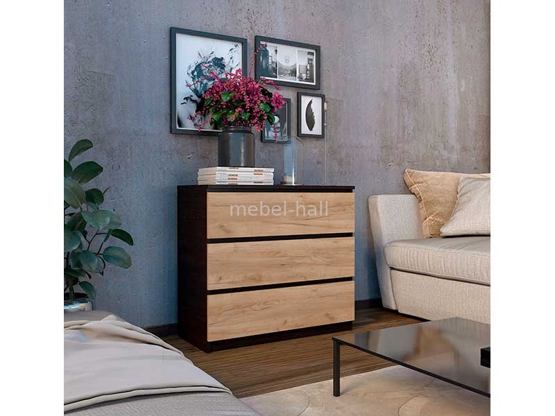 Комод 3 шухляды Брайт Мастер Форм 800х376х730h мм ДСП Дуб Крафт Золото / Венге Магия