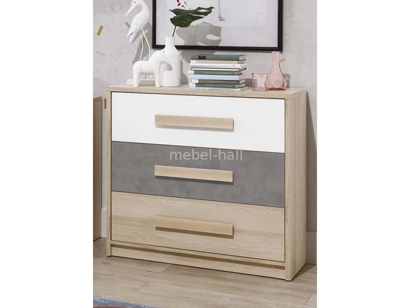 Современный комод 850 3Ш Айго Сокме функциональный и вместительный, предназначен для обустройства современной детской комнаты. Комод оснащен тремя выдвижными ящиками на телескопических направляющих.