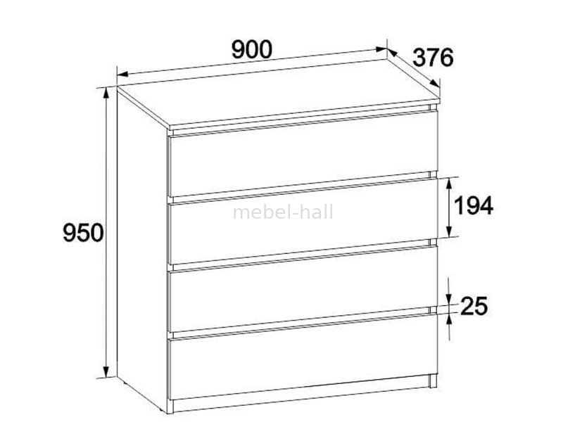 Комод 4 шухляды Брайт Мастер Форм 900х376х950h мм ДСП Дуб Крафт Белый / Дуб Крафт Серый