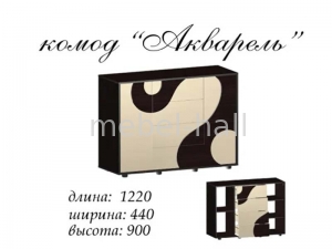 Комод "Акварель" создан в приятном сочетании темных и светлых оттенков. Изделие выполнено с применением ламинированного ДСП с МДФ накладками. Оригинальности мебели придает отсутствие ручек, из заменяют изгибы МДФ профиля. Имеет выдвижные шухляды и полки внутри для хранения Ваших вещей. Комод хорошо дополнит собой любой интерьер.