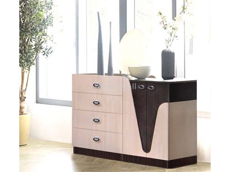 Комод Арья от украинского производителя Мастер Форм. Мебель выполнена в современном стиле в контрастном сочетании цветов с треугольными вставками. Она понравится любителям функциональной и одновременно стильной мебели.