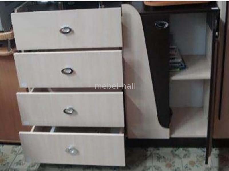 Фасад выполнен из ламинированного ДСП Дуб Молочный и Венге Магия.