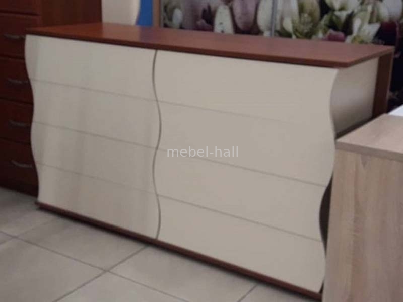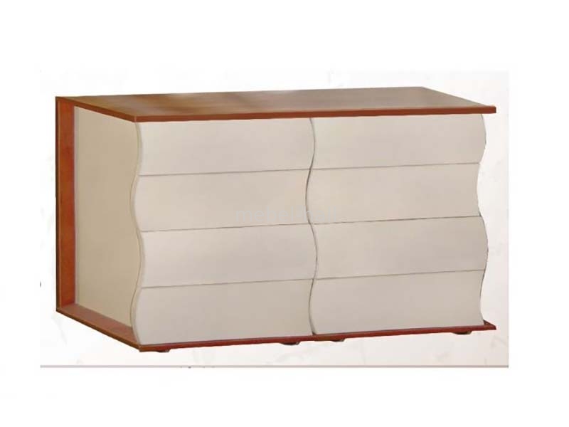 Комод Наяда от украинского производителя Мастер Форм. Неординарная модульная мебель для спальни в неоклассическом стиле. Современный дизайн, отсутствие ручек, изящные волнистые фасады, контрастная цветовая гамма придают выразительности мебели, а также помогут оформить оригинальный интерьер Вашей комнаты. Он впишется в любой современный интерьер и понравится любителям функциональной и одновременно стильной мебели.