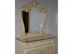 Фасад отлакированный, выполнен из ламинированного ДСП в цвете Пино Беж Лак + Художественная Печать + Декоративная Резьба в цвете Пино Беж + Патина.