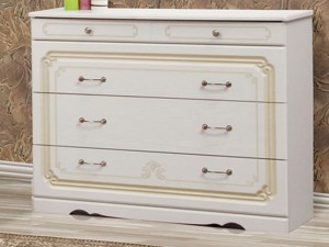 Комод Луиза с тремя большими шухлядами Світ Меблів Белое Дерево от украинской фабрики "Світ Меблів". Белый шикарный классический комод в итальянском стиле, характеризуется изысканным дизайном, роскошными формами с оригинальными ручками из латуни, сочетающиеся с патиной золотом на фасадах. Модель оснащена выдвижными ящиками на направляющих полного выдвижения, что гарантирует плавность при выдвижении и долговечность. Комод Луиза достоин королевских апартаментов.