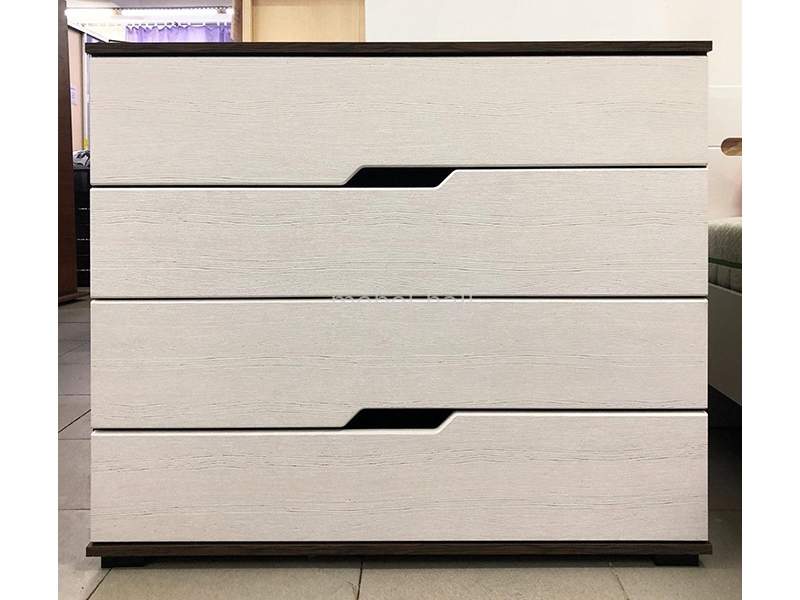 Комод Мария Світ Меблів стильный комод, воплощающий в себе всю красоту и сдержанность простых линий и форм. Выпускается в эффектном сочетании цветов белого фасада и темного корпуса. В качестве декора используются прорези, вместо ручек. Комод имеет четыре выдвижные ящика на направляющих полного выдвижения, что гарантирует плавность и долговечность. Комод Мария украсит самый изысканный интерьер.