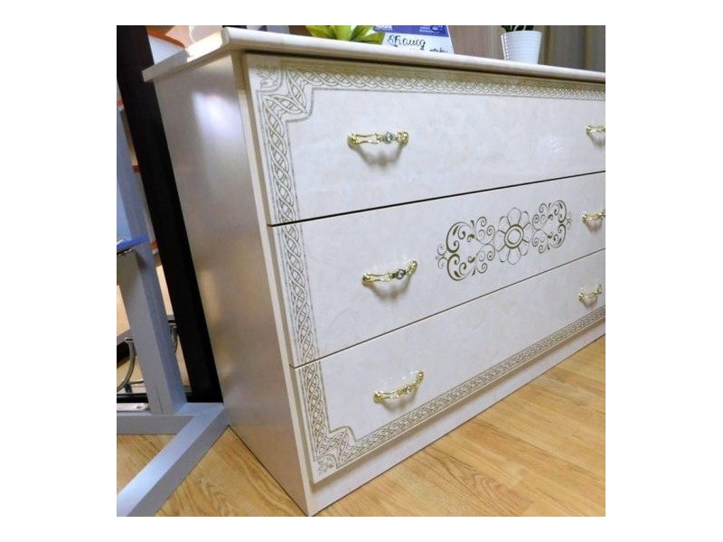 Комод Венеция Новая с тремя шухлядами Світ Меблів Пино Беж от украинской фабрики "Світ Меблів". Классический комод в итальянском стиле, характеризуется изысканным дизайном, роскошными формами с оригинальными ручкам, сочетающиеся с художественной росписью на фасадах. Модель оснащена выдвижными ящиками на направляющих полного выдвижения, что гарантирует плавность при выдвижении и долговечность. Комод Венеция достоин королевских апартаментов.